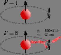 Wasserstoffatom mit paralleler (F = 1) und antiparalleler (F = 0) Einstellung des Elektrons. Der Übergang wird als Spin-Flip bezeichnet.