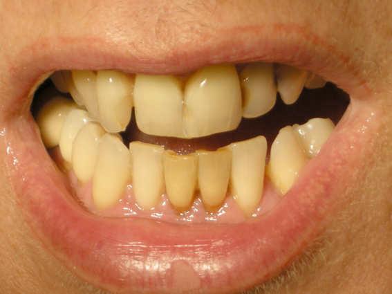 Various chemical and physical agents can be used to whiten teeth. Toothpaste typically has small particles of silica, aluminum oxide, calcium carbonate, or calcium phosphate to grind off stains formed by colored molecules that have adsorbed onto the teeth from food. Unlike bleaches, whitening toothpaste does not alter the intrinsic color of teeth.