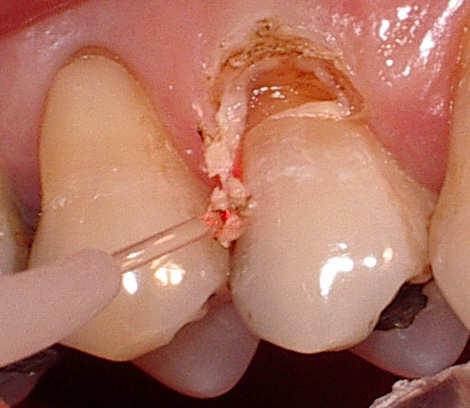 A palatal view of a maxillary premolar during a