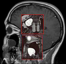 Big mucous membrane cyst in the right maxillary sinus (human skull)