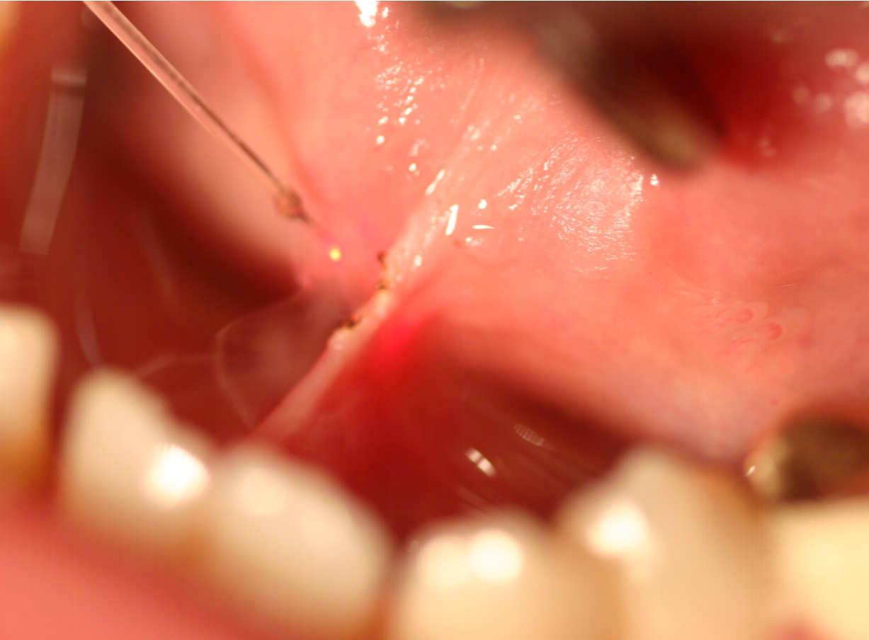 Since cutting usually generates absolutely no pain with the laser, one injects only few drops (to the pacification of the patient) lidocaine with 15 percent.