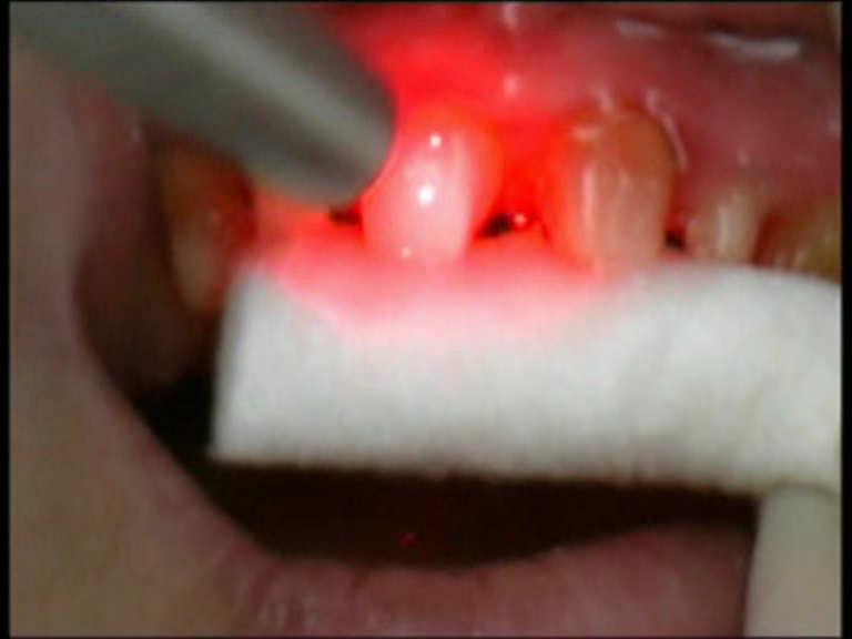 Another procedure is the use of laser therapy. A study involving 1102 teeth of 388 patients determined that when used with the correct irradiation parameters, was effective in treating dentinal hypersensitivity. This therapy quickly reduces pain and maintains a prolonged pain-free status in 91.27% of the cases.