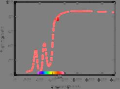 Transmittance of ruby in optical and near-IR spectra. Note the two broad blue and green absorption bands and the narrow absorption band at 694 nm, which is the wavelength of the ruby laser.